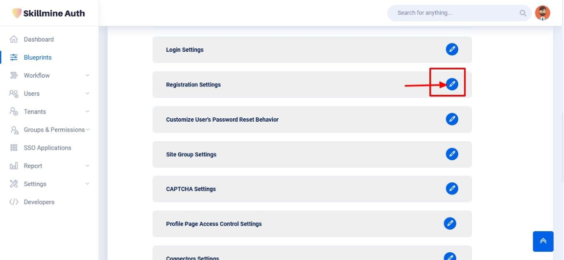 Click the edit Icon to Open Registration page settings page.&#x20;