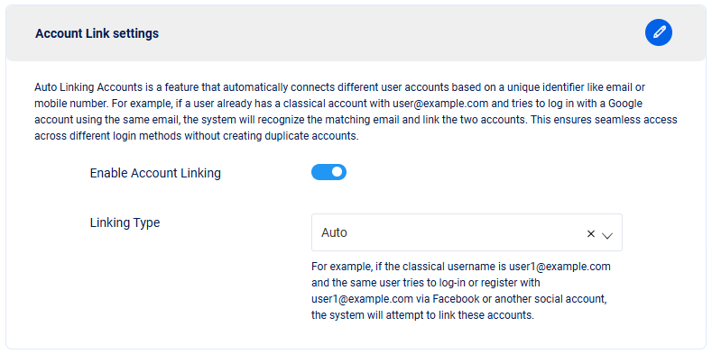 ***Account Link settings:*** &#x20;
