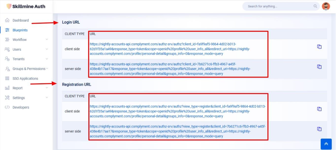 In Flow Overview you will get the login Url & Registration Url. Using this authorization endpoint you can initiate the login/registration page.&#x20;