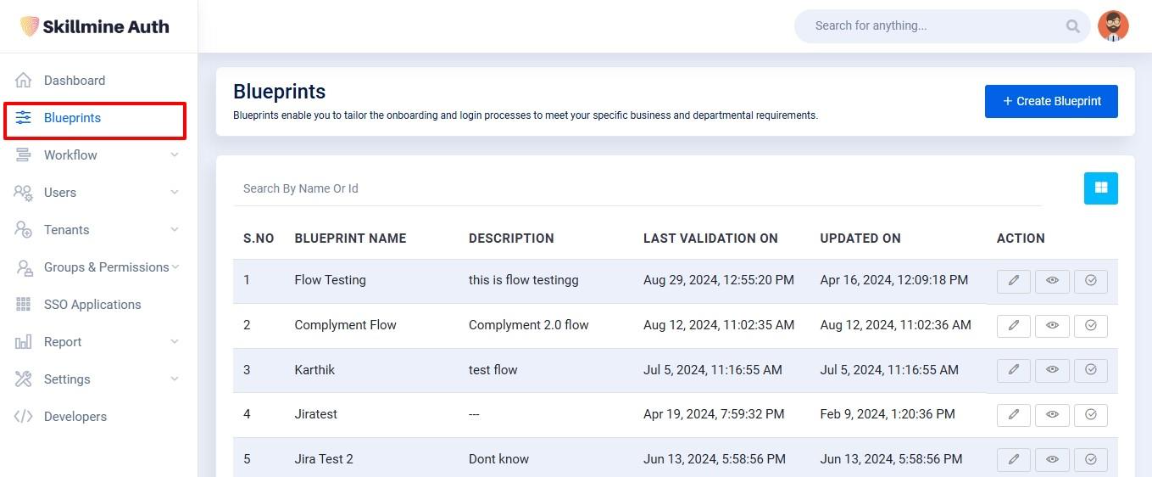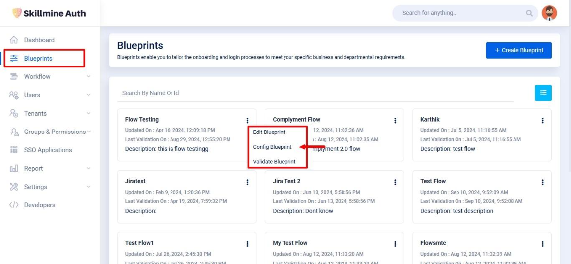 ***Flow Name:*** A "Blueprint name" refers to the specific method or sequence of steps used to authenticate users and obtain access to protected resources in an application or system.&#x20;