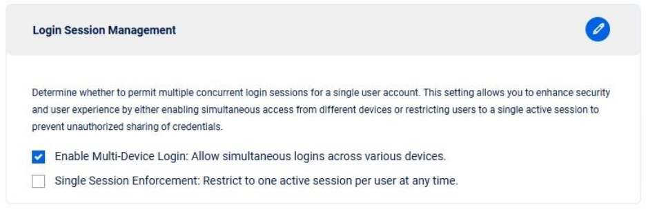 **Single Session Enforcement:** Limit users to one active session at a time, enhancing security and preventing credential sharing.&#x20;