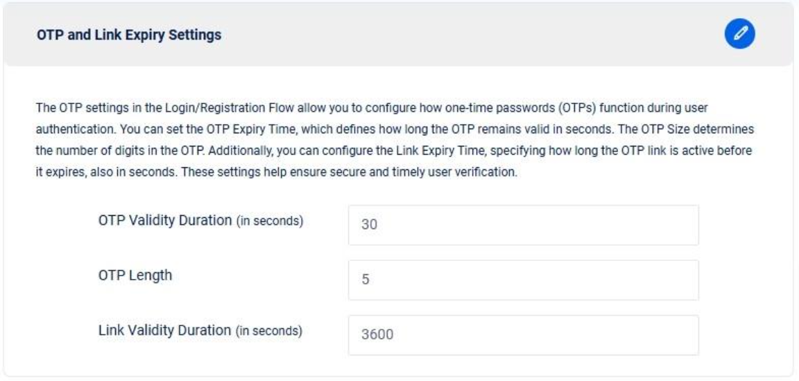 ***OTP and Link Expiry Settings:***&#x20;