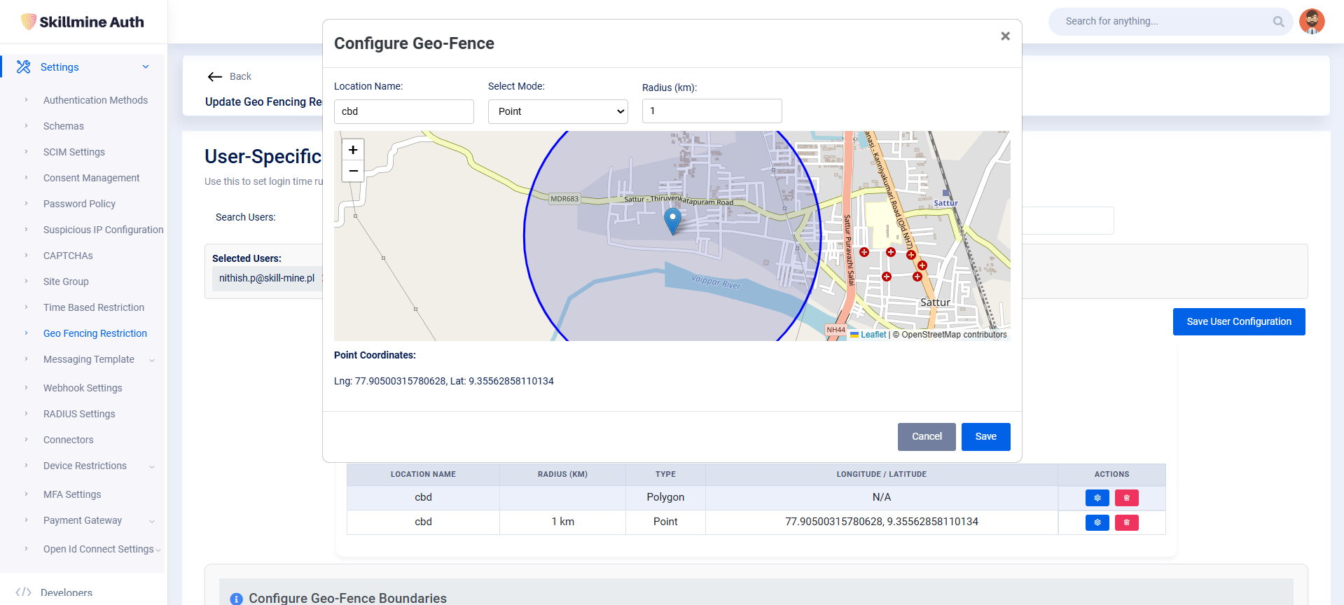 This component enables the configuration of Geo-Fencing restrictions, allowing administrators to control where users can log in based on geographical boundaries.