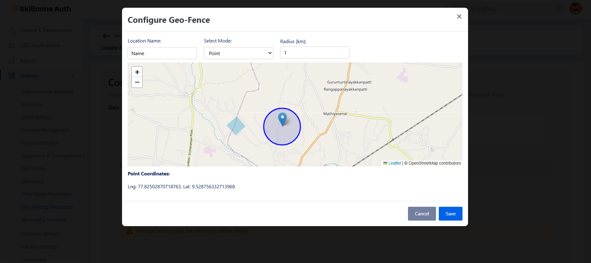 Click the "Save" button in the modal to save the Geo-Fence configuration.
