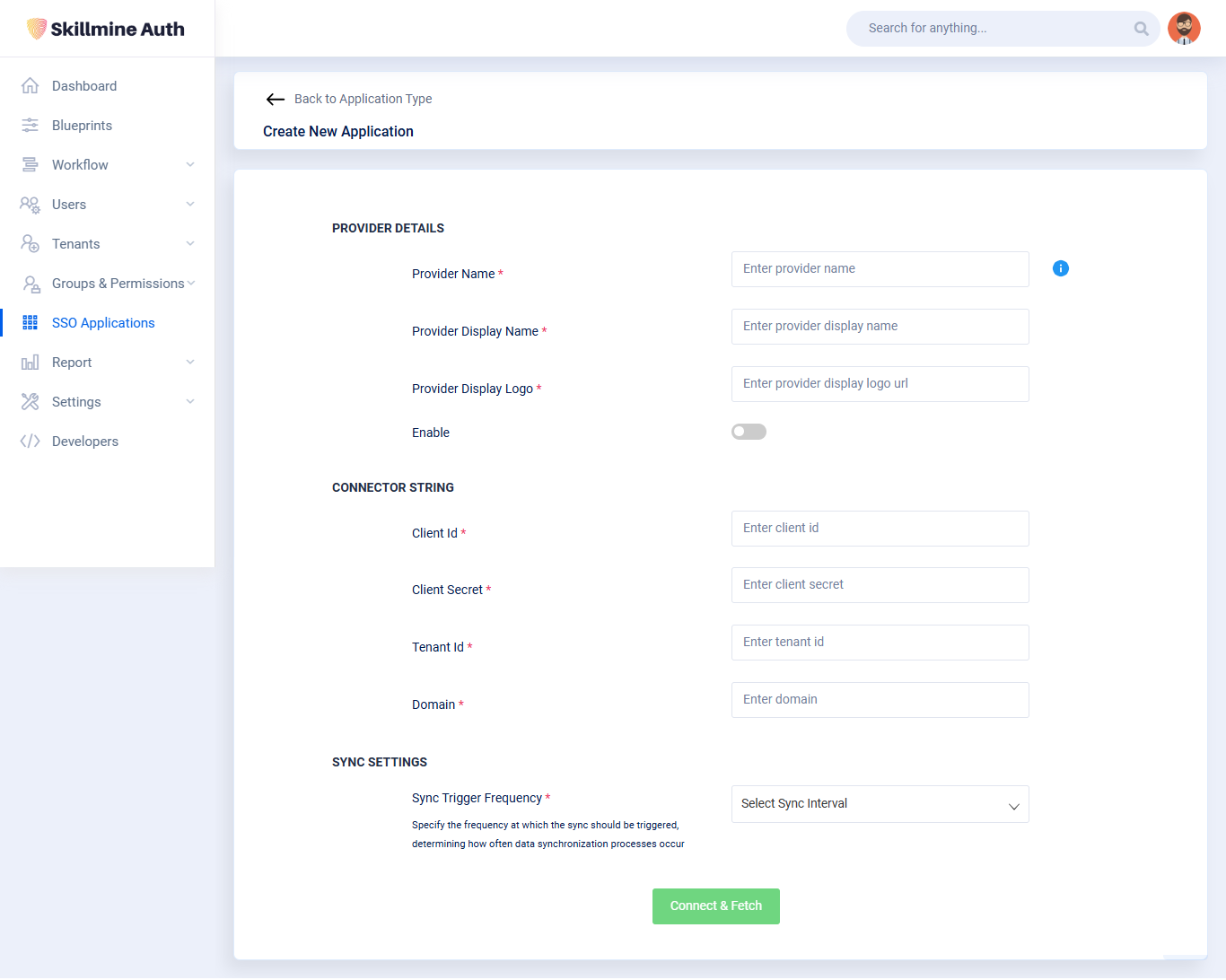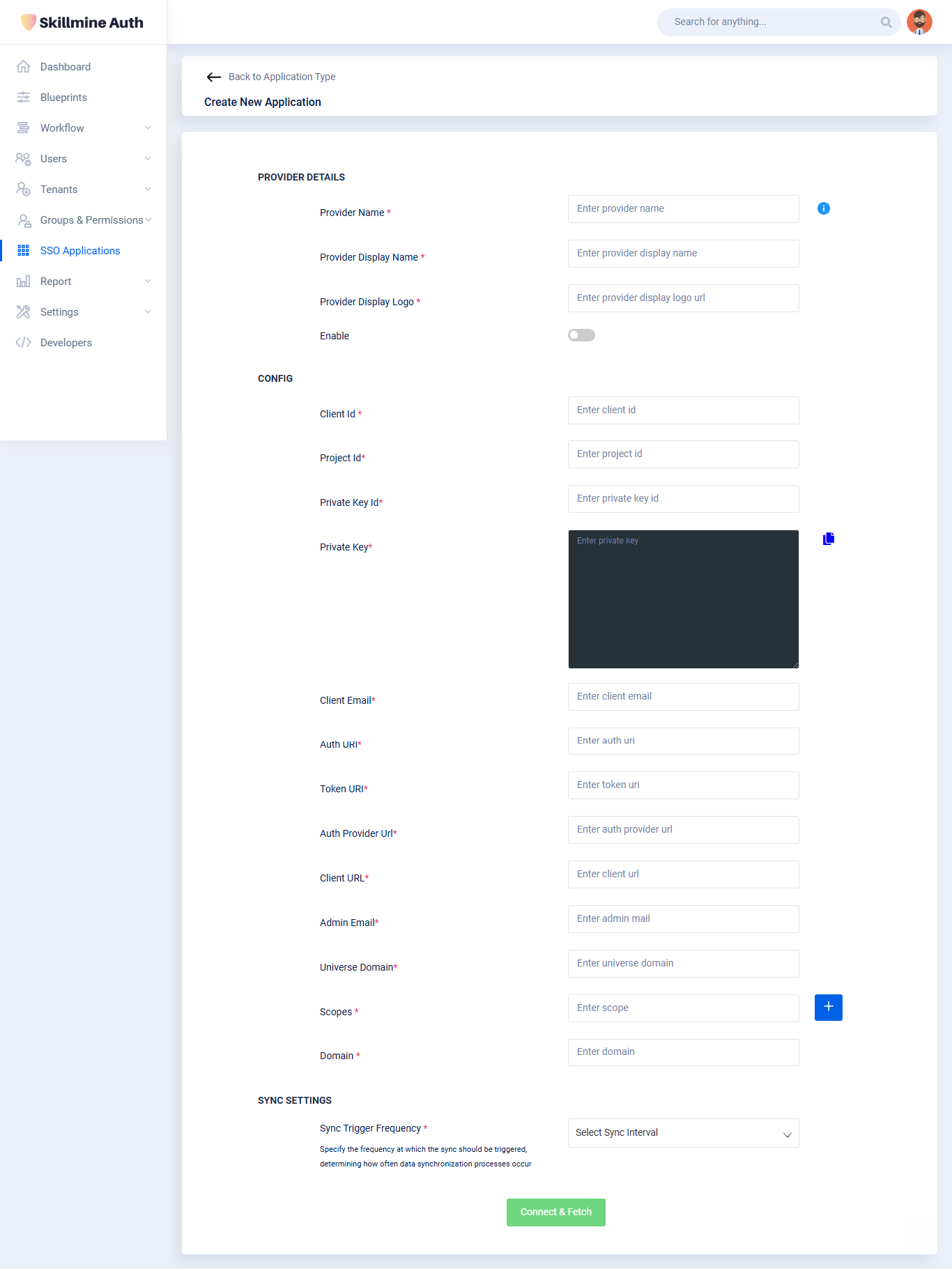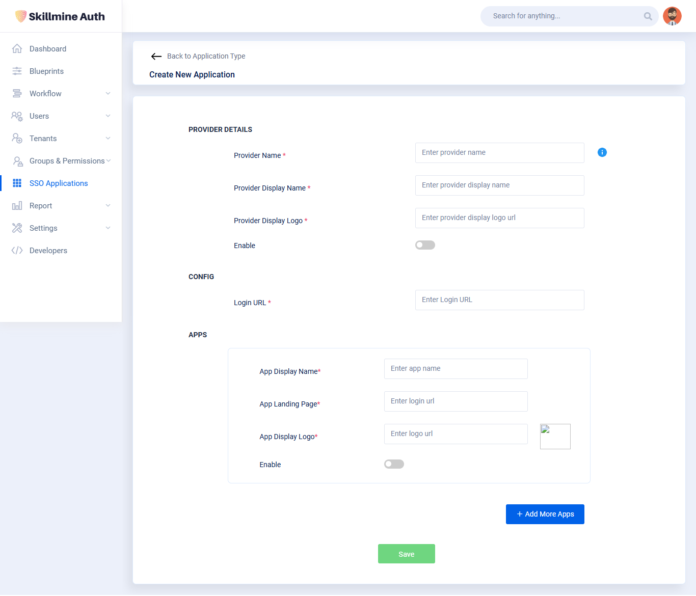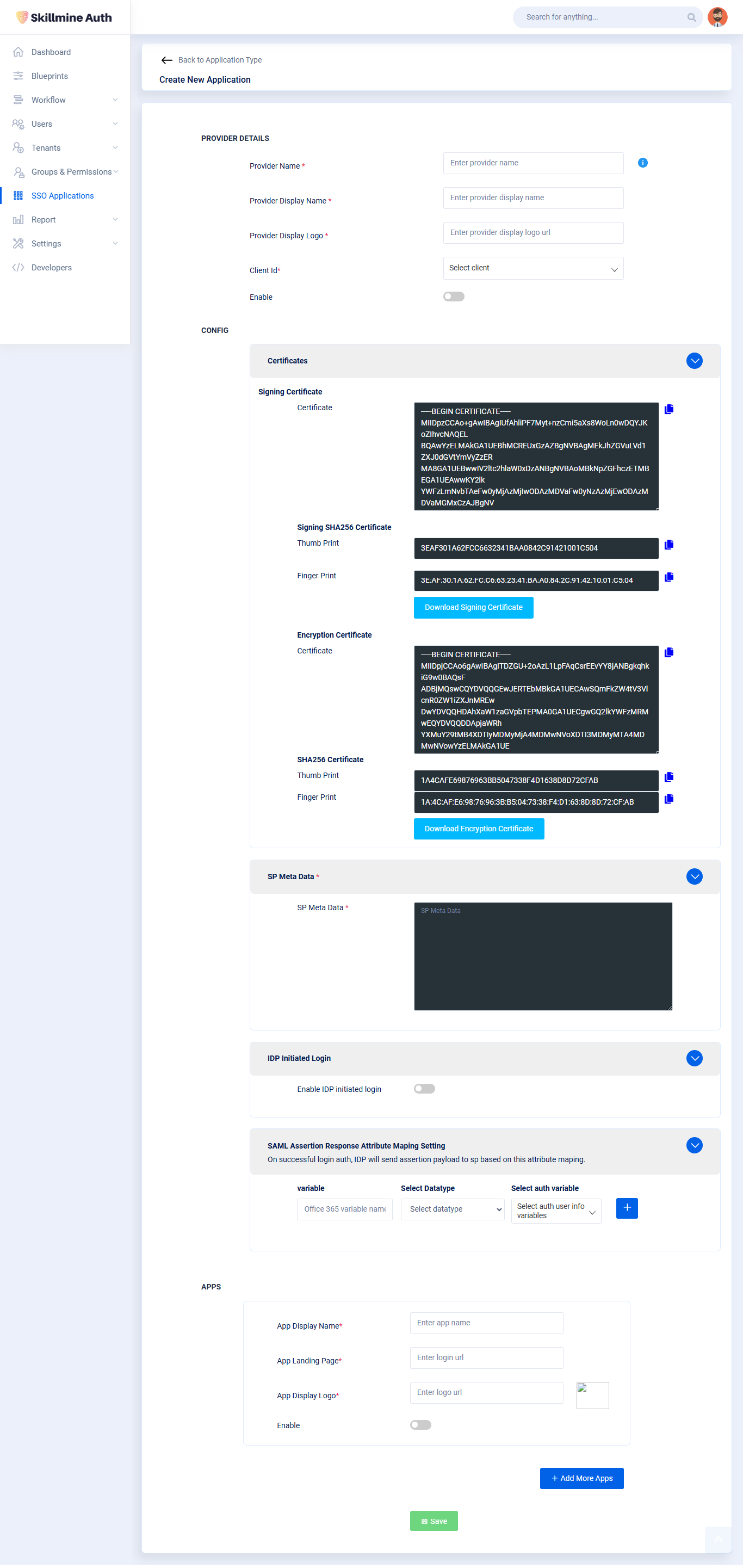 * Provider Name (Required): Enter a unique name for the provider. Example: SkillmineSSO.&#x20;